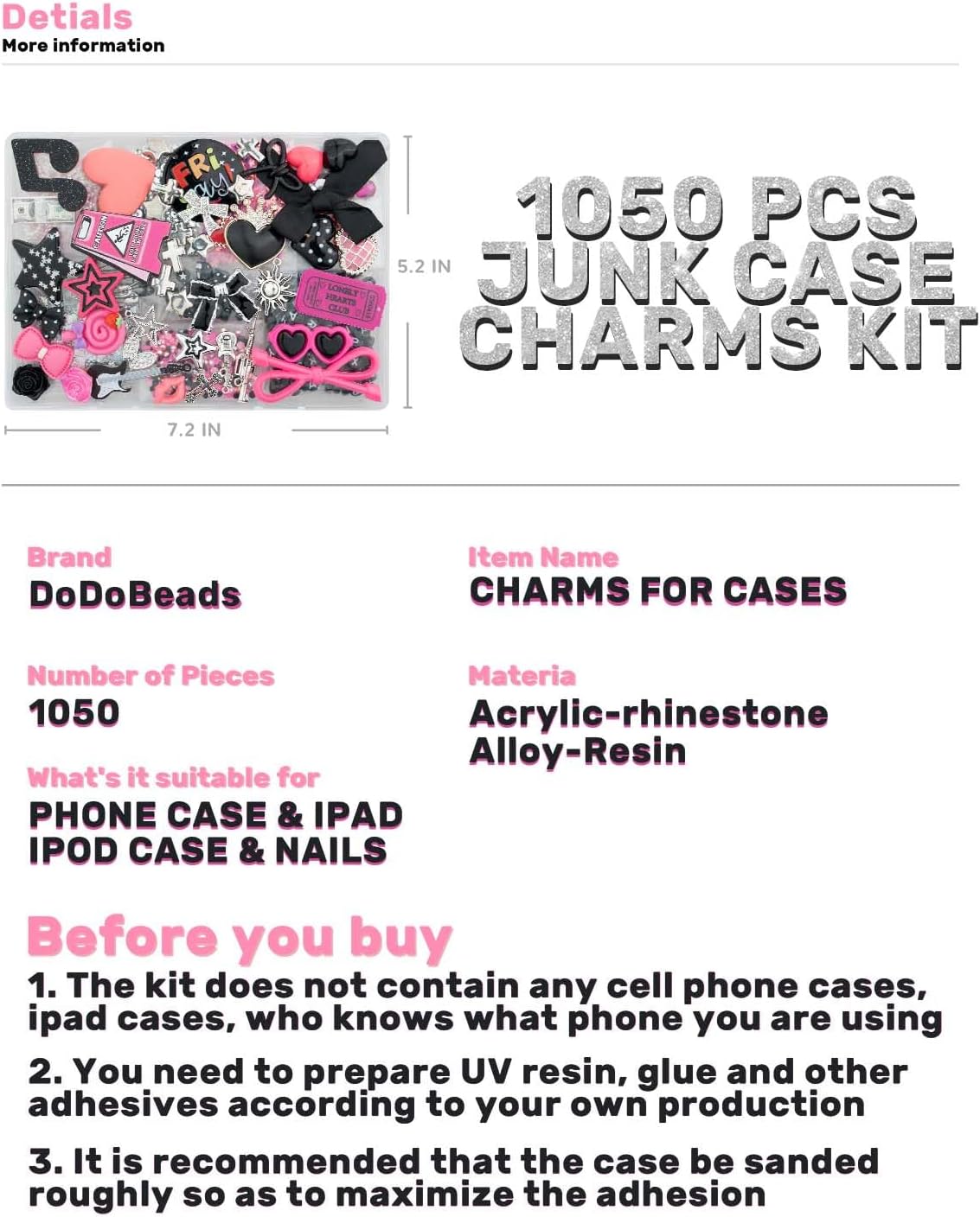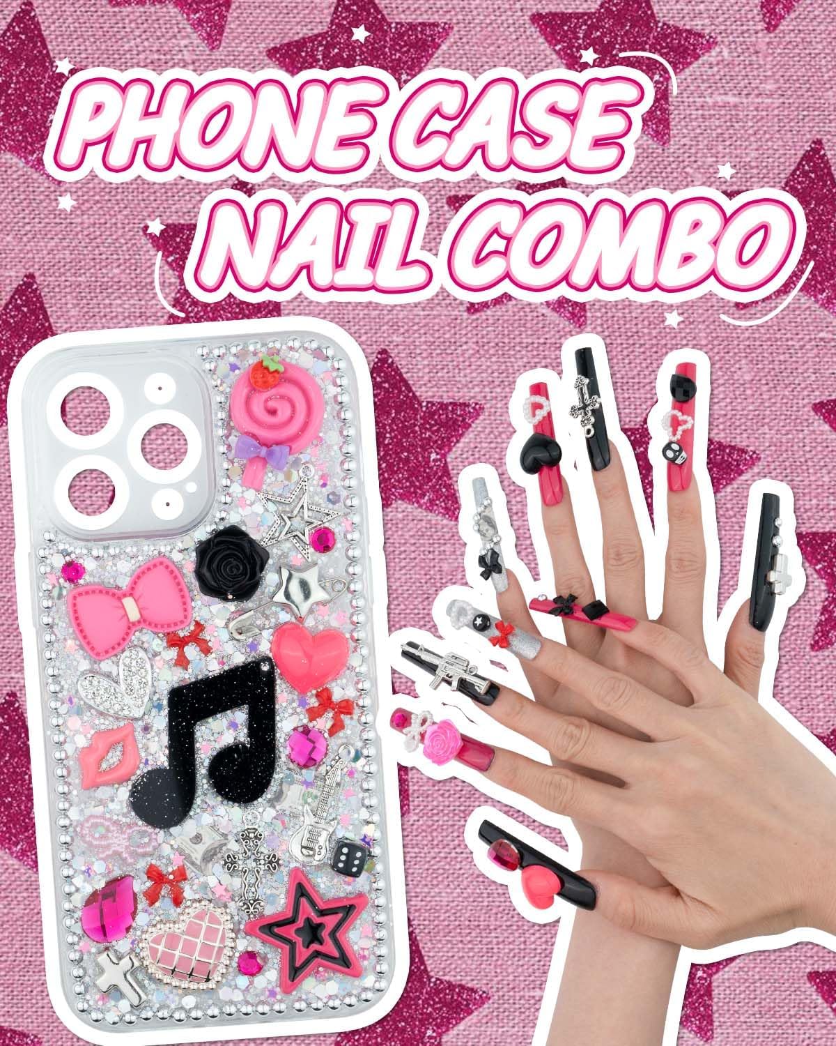 1050 Pcs Junk Phone Case Charms Kit, Charms for Customizing Cases, Kawaii Bow, Letter Beads, Nail Accessories, Flatback Pearls, Rhinestones, Cute Aesthetic Decor for Personalization