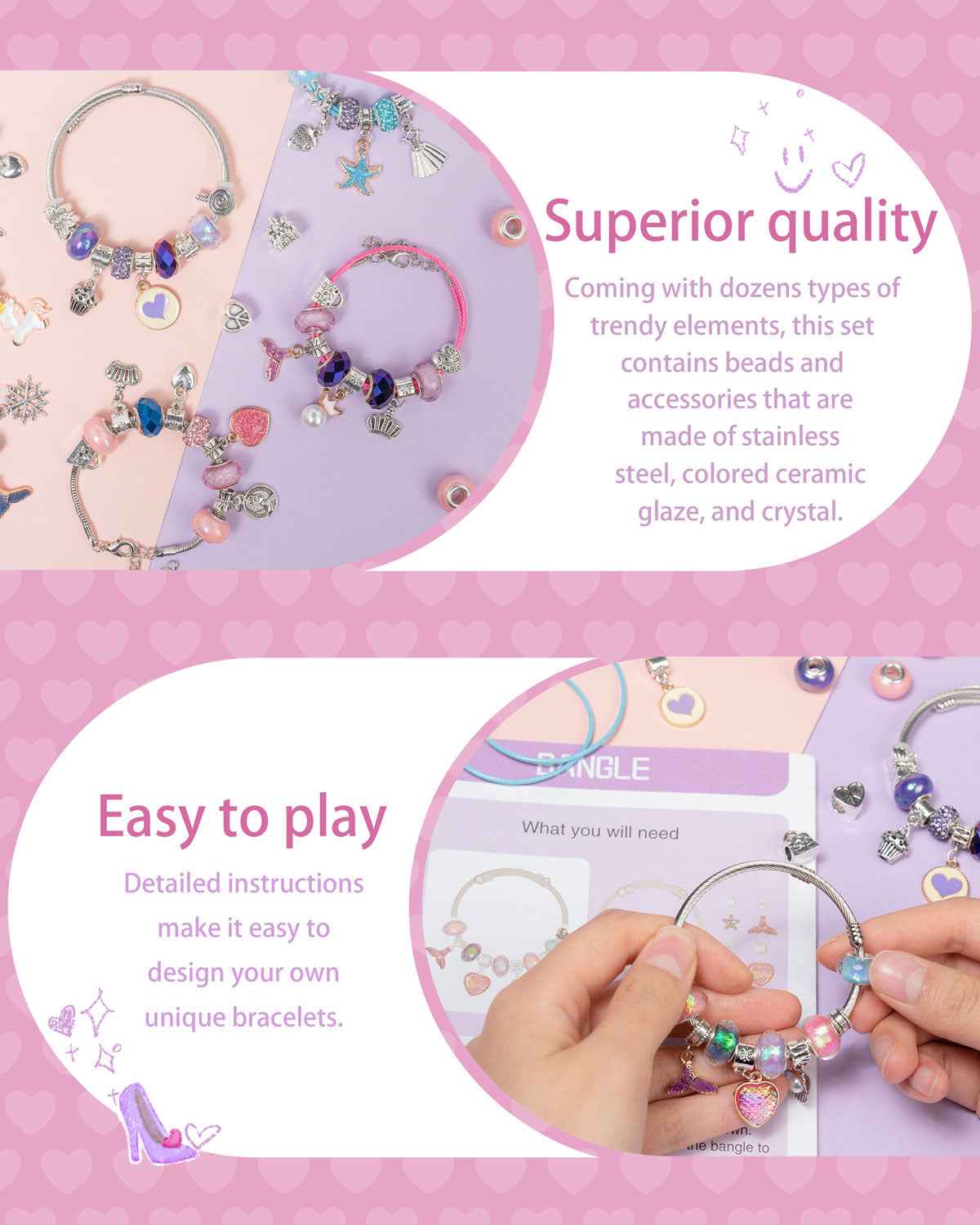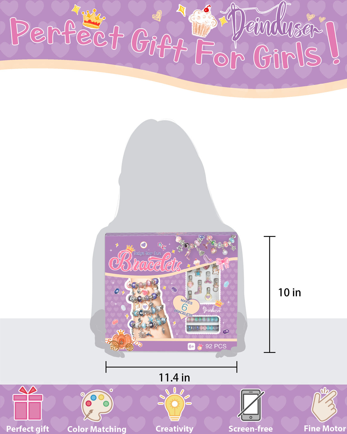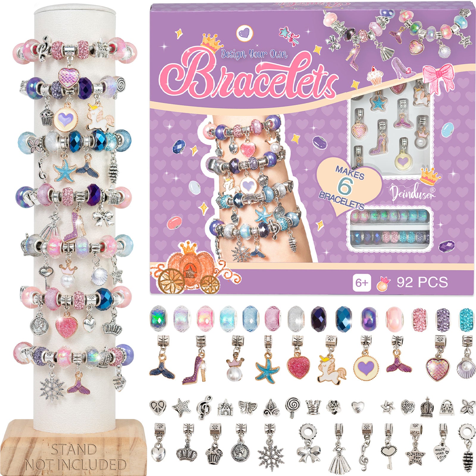Deinduser Charm Bracelet Making Kit, Jewelry Making Supplies, Charms for Jewelry Making, Craft Kit for Your Princess, Gift for Your Princess