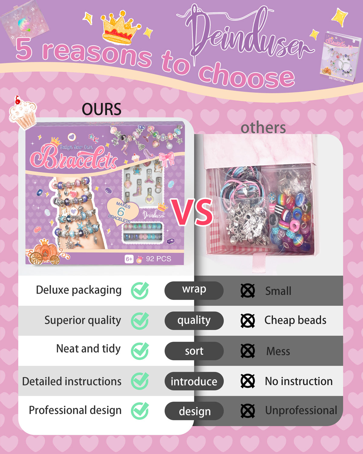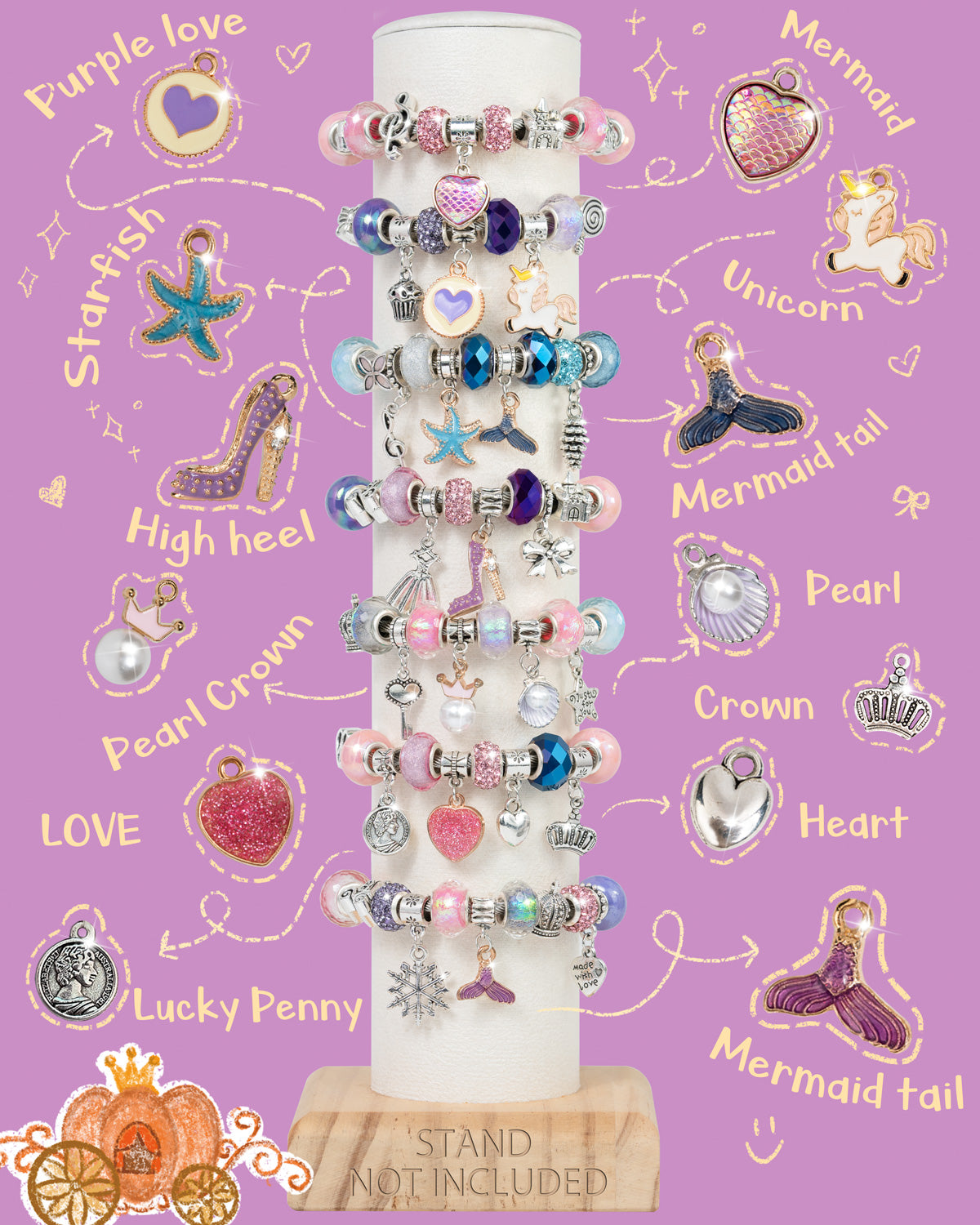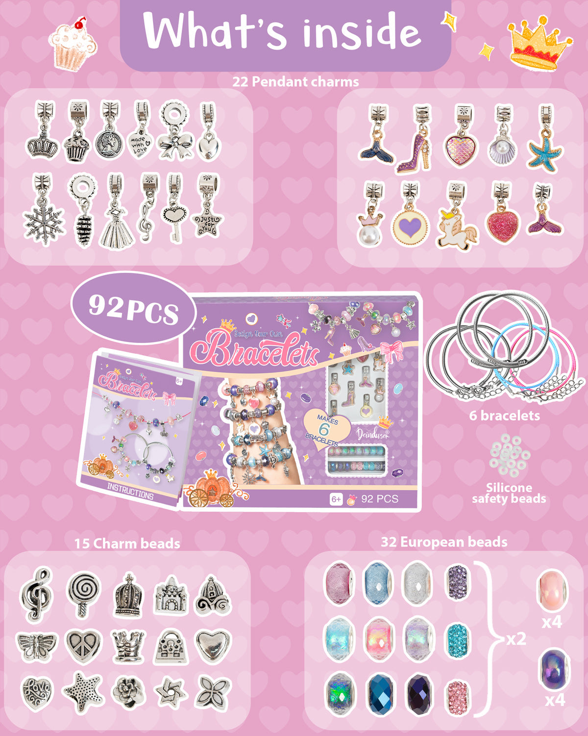 Deinduser Charm Bracelet Making Kit, Jewelry Making Supplies, Charms for Jewelry Making, Craft Kit for Your Princess, Gift for Your Princess