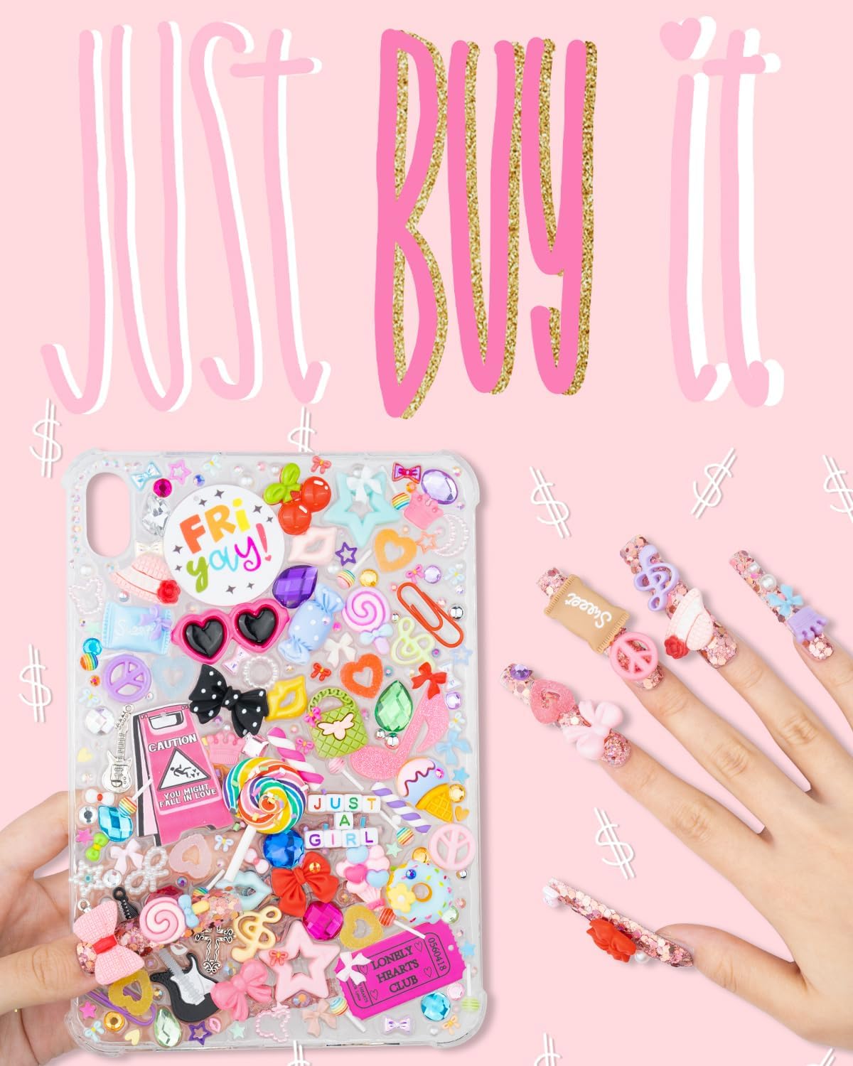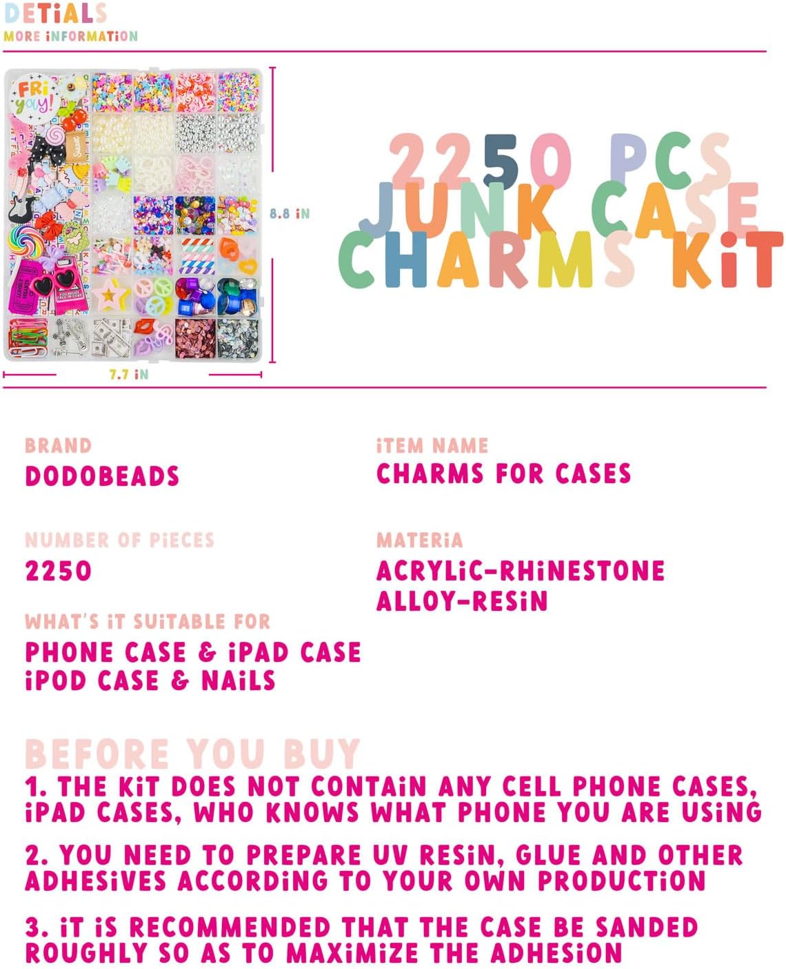 DoDoBeads 2250 Pcs Junk Case Charms Kit, Charms for Junk Cases, Phone Case Charms, Junk Case Kit with Big Charms, Bow Charms, Nail Charms, Letter Beads, Pink Charms,Junk Beads Charms