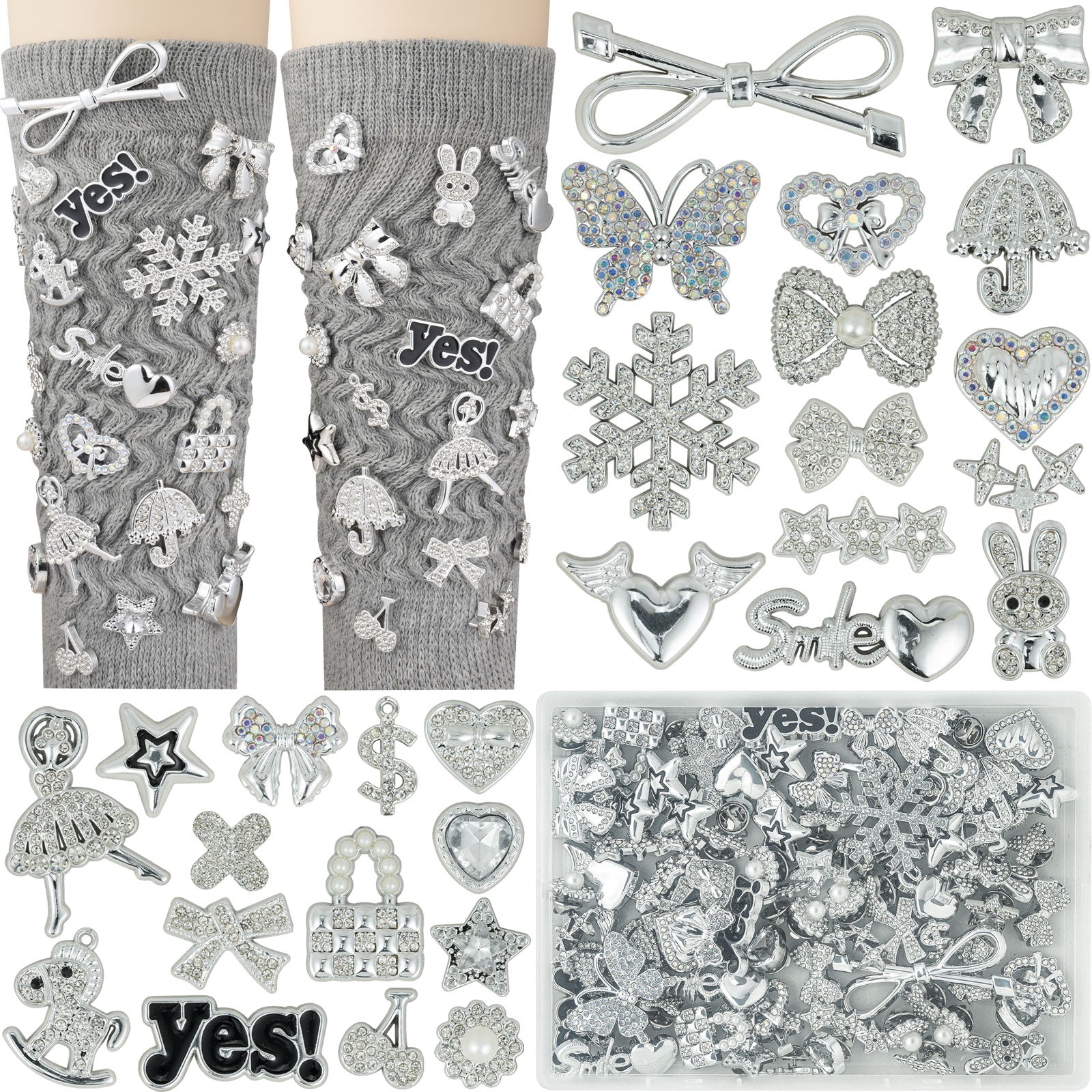 DoDoBeads 81 Pcs Junk Socks Charms Kit, Silver Shoe Charms for Sneakers