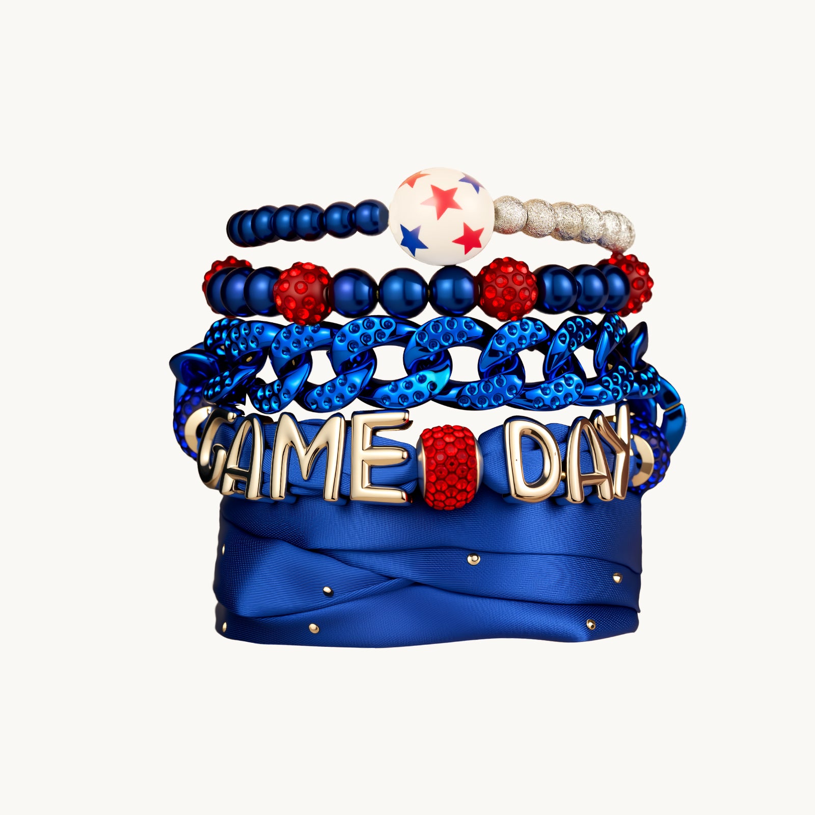 DoDoBeads Game Day Scarf Bracelet Set Blue&Red