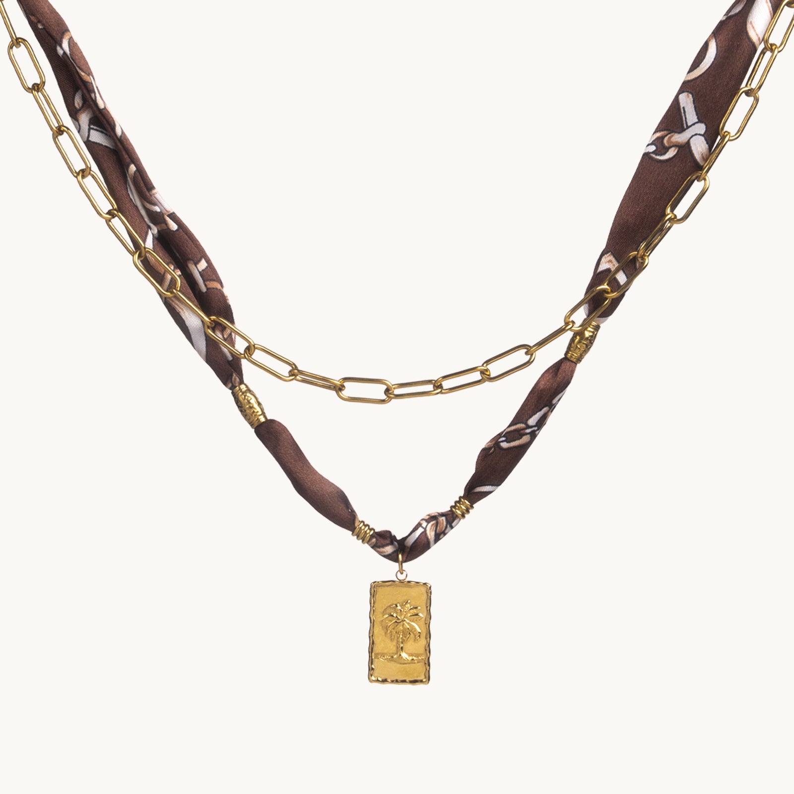 • Boho-Western Vibe: Satin twilly scarf necklaces in leopard/bandana prints, paperclip-chain layers, and charm details—easy cowgirl-chic for festivals, concerts, rodeos, and everyday outfits