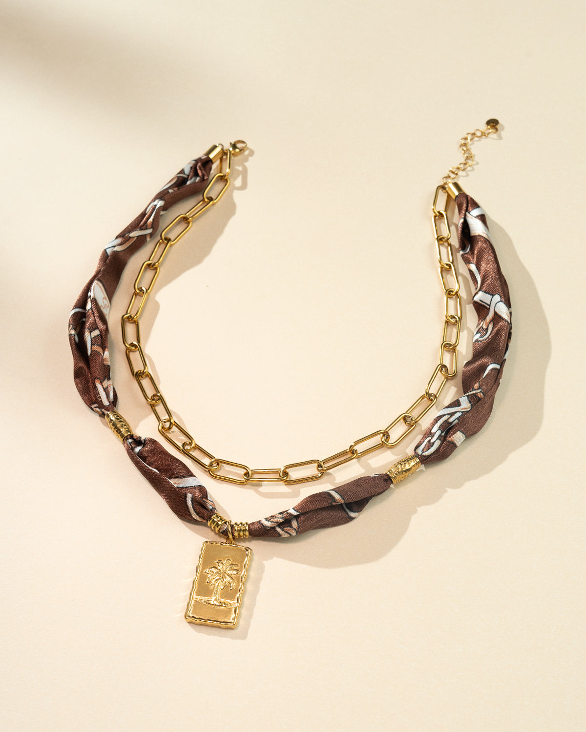 DoDoBeads Layered Scarf Necklace with Gold Paperclip Chain