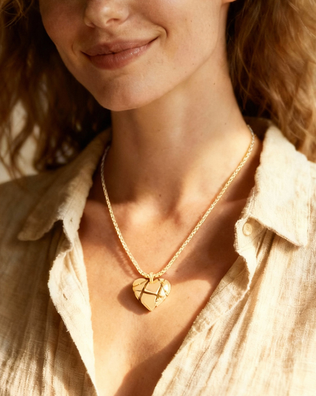 DoDoBeads Reforged Heart Necklace, 18K Real Gold Plated Solid Brass