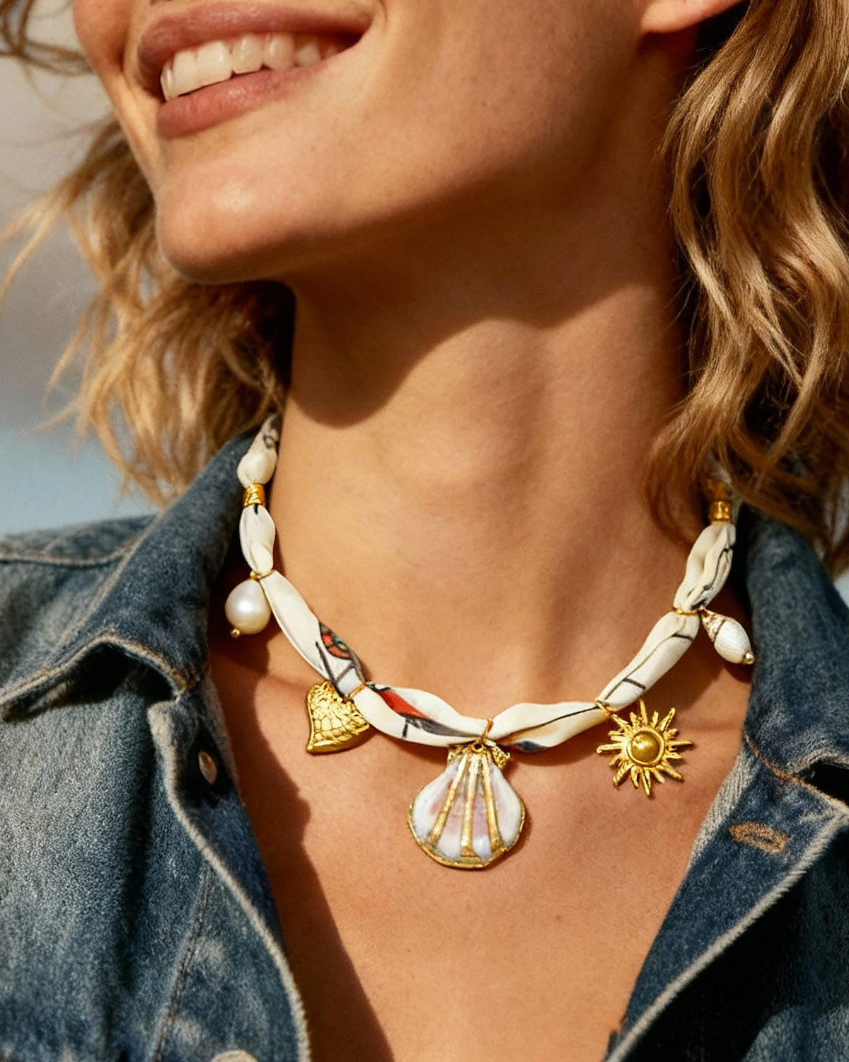 DoDoBeads Scarf Charm Necklace – Seaside Adventure – Nautical Hot Air Balloon Scarf Necklace