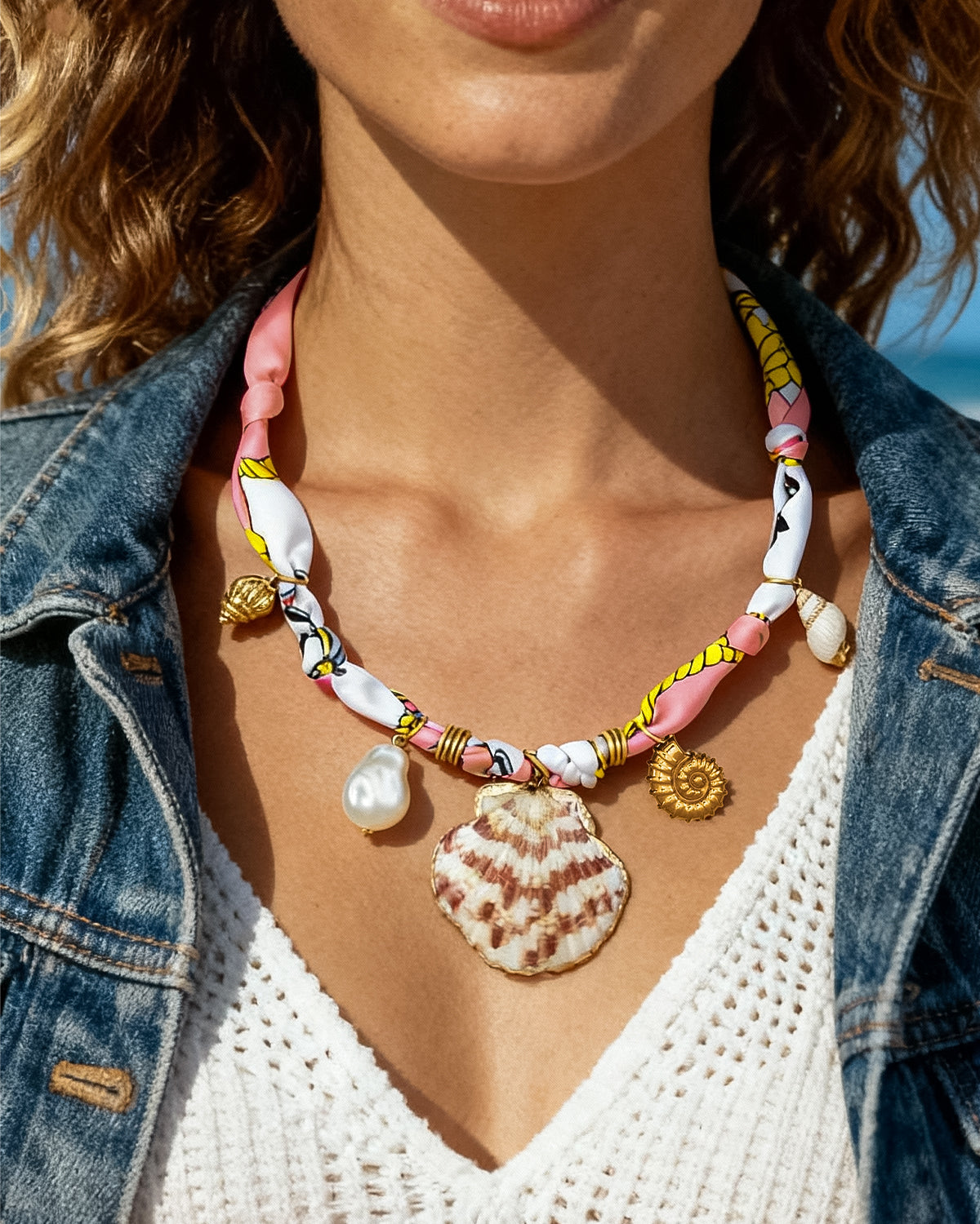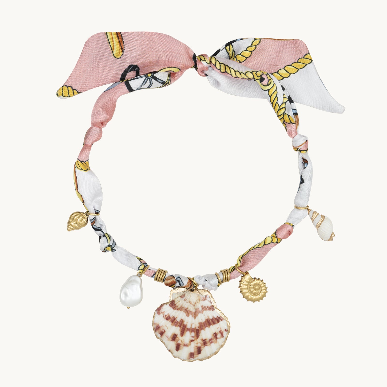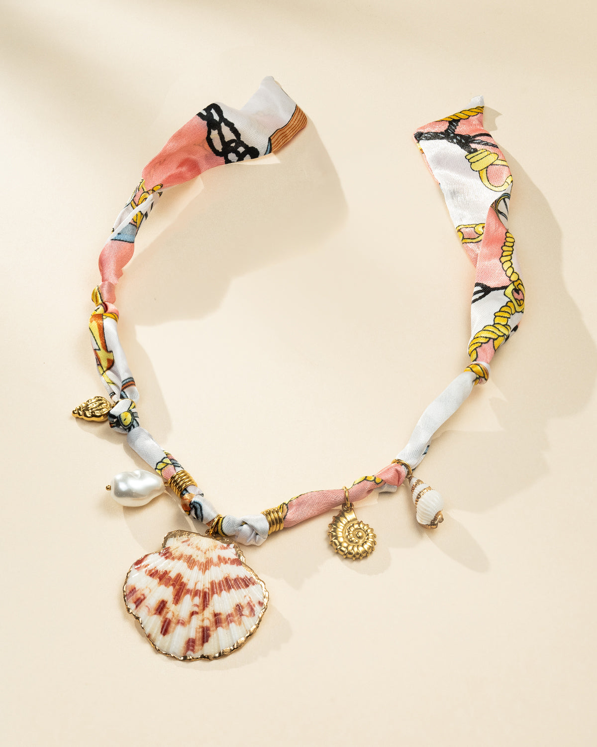 DoDoBeads Scarf Charm Necklace – Shell Romance – Pink Nautical Scarf Necklace