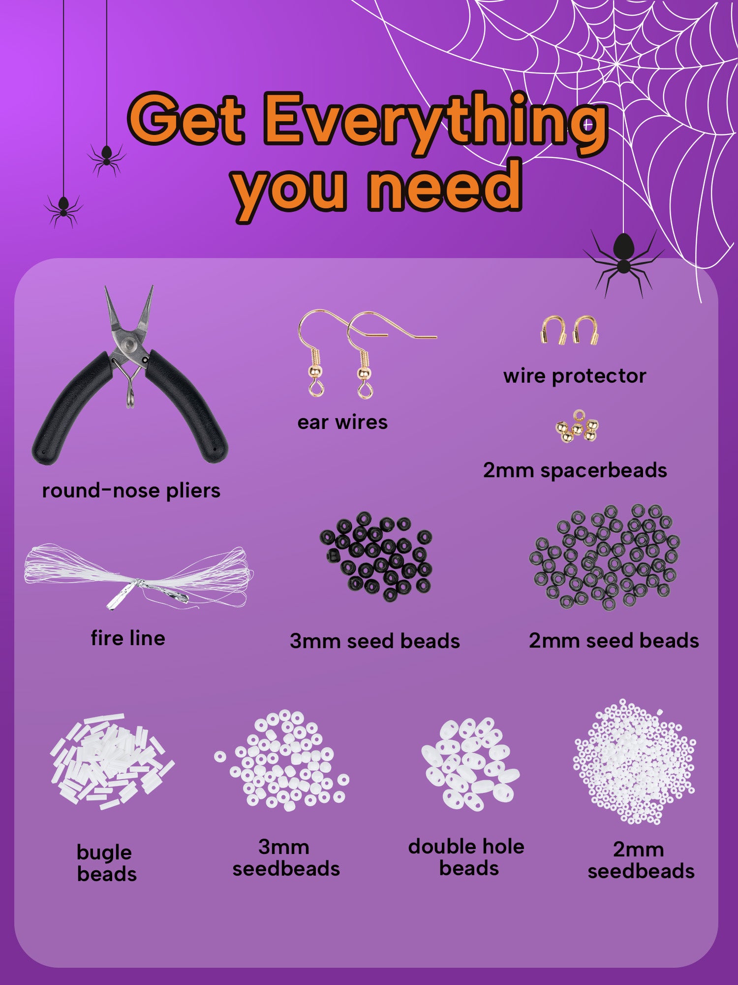DoDoBeads Skull Earring Making Kit, Halloween Earrings Making Kit, Jewelry Making Kit with Glass Beads, Gold Spacer Beads, Earring Hooks, Jump Rings, Tools