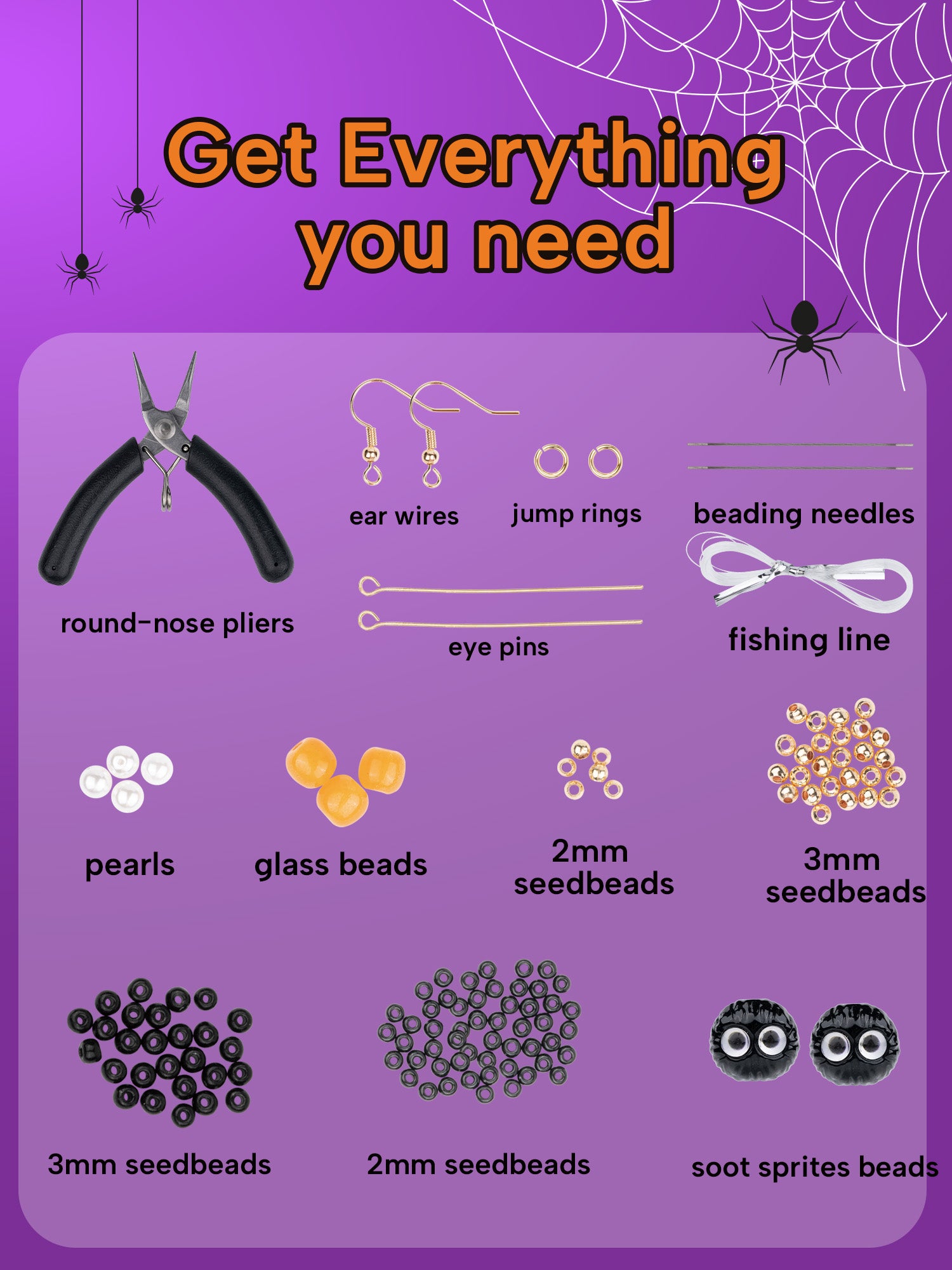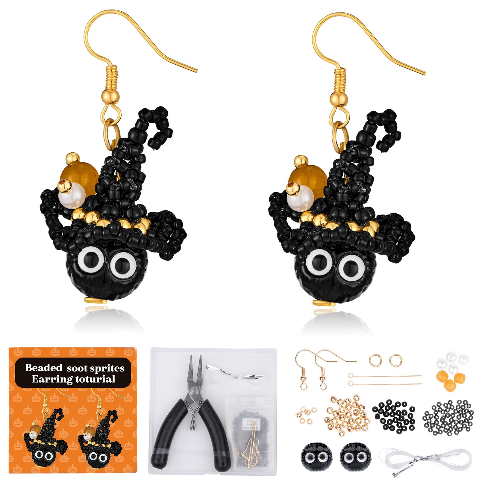 DoDoBeads Wizard Earring Making Kit, Halloween Earrings Making Kit, Jewelry Making Kit with Glass Beads, Crystal Beads, Tube Beads, Gold Spacer Beads, Copper Wire, Earring Hook, Jump Rings, Tools
