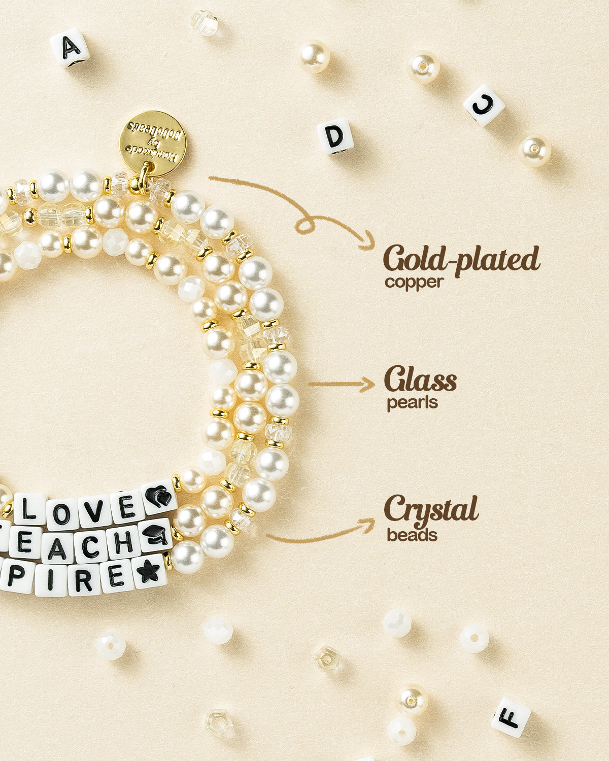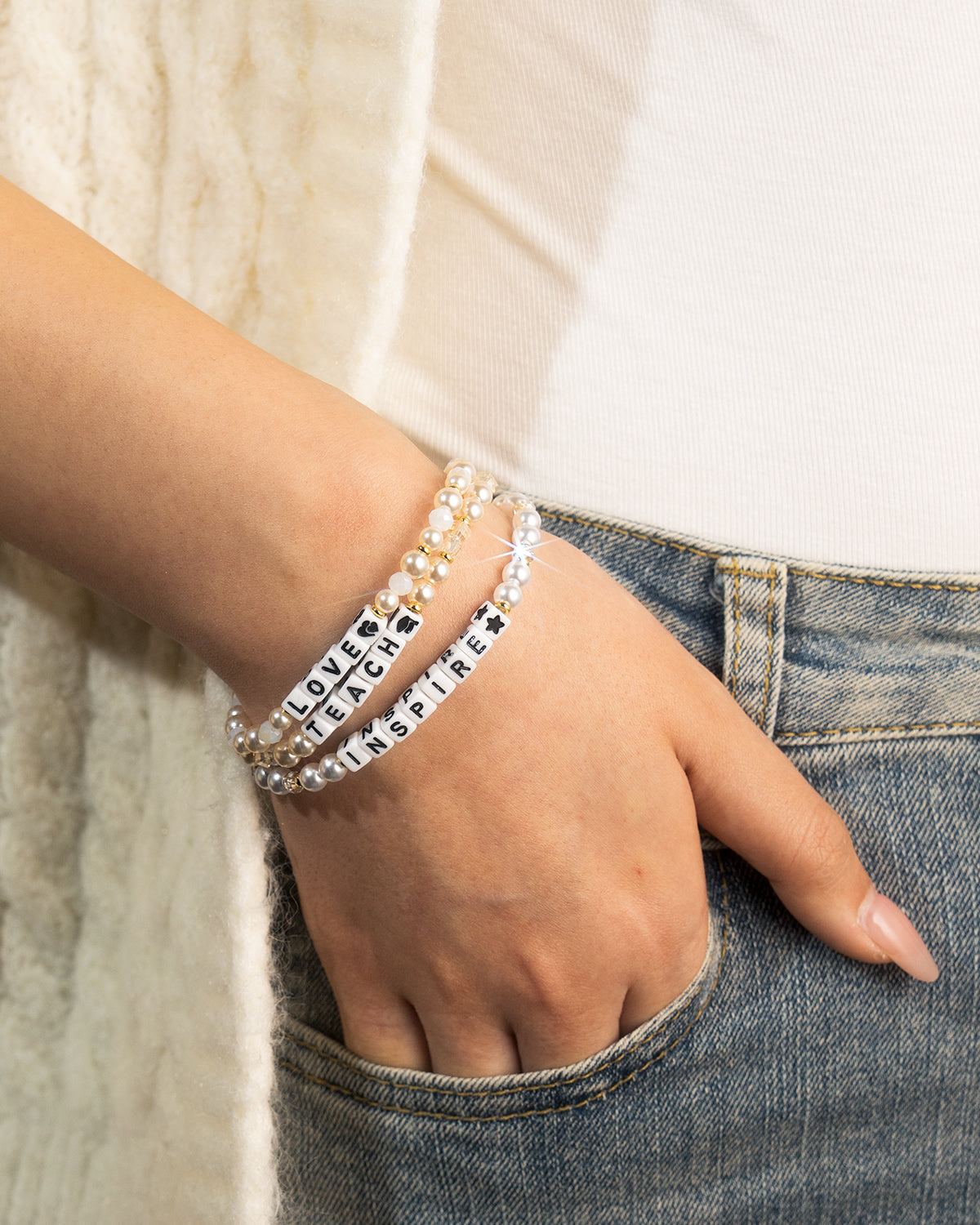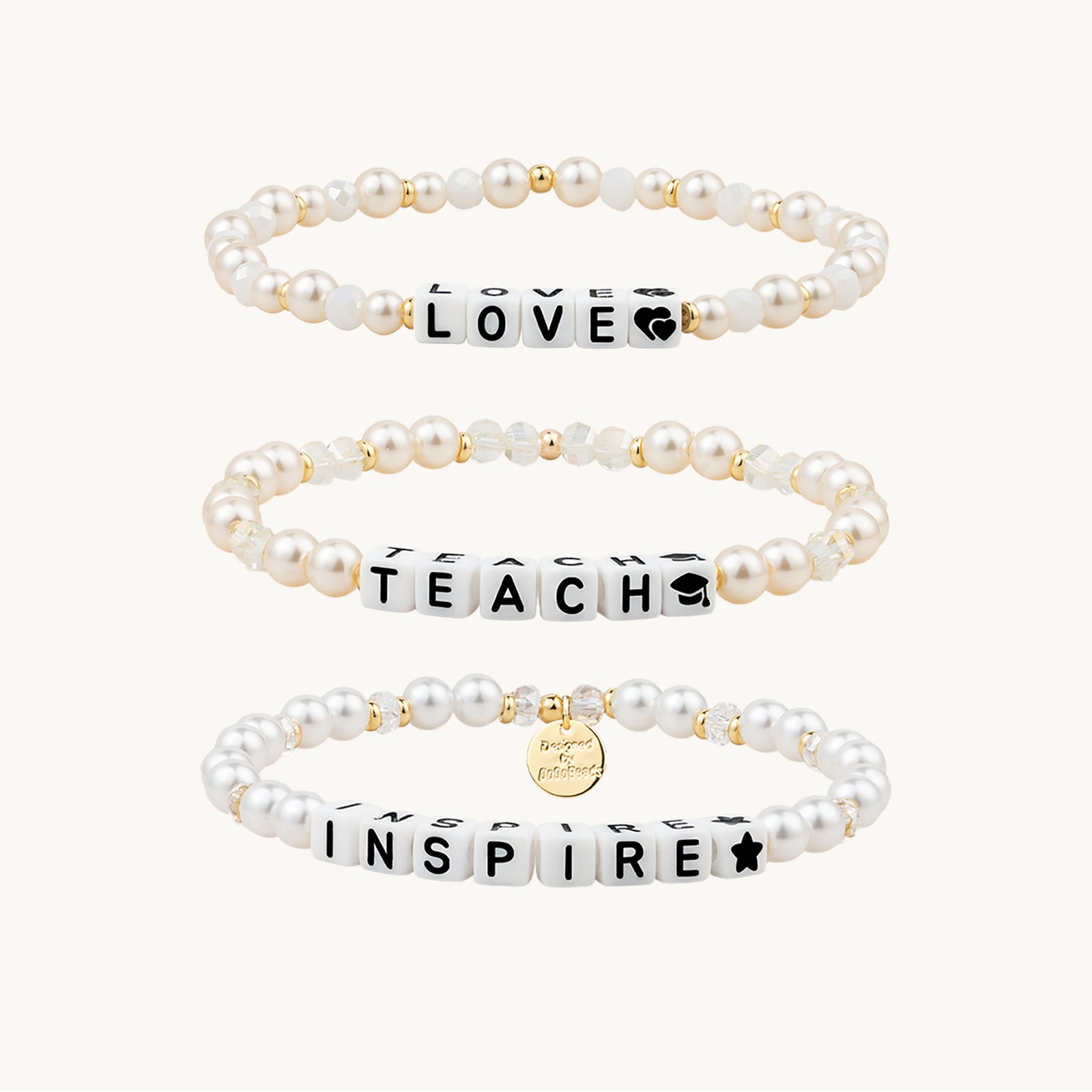 TEACH LOVE INSPIRE 3pcs Teacher Bracelets, Teacher Appreciation Gifts